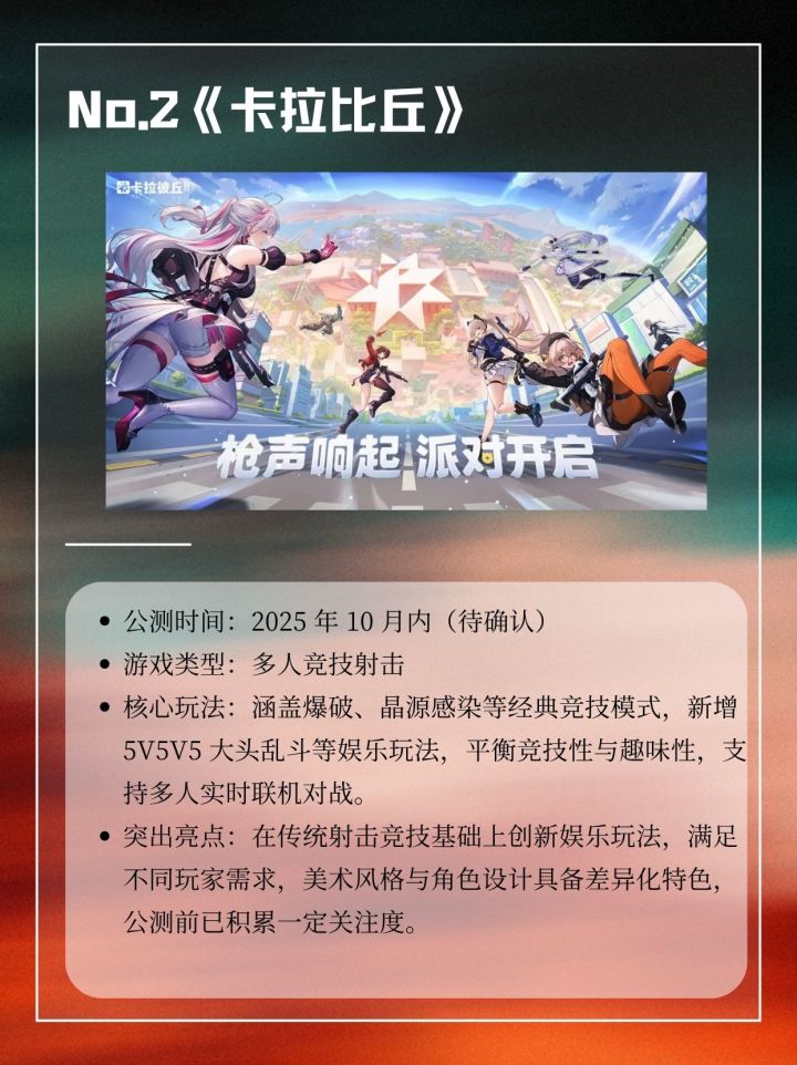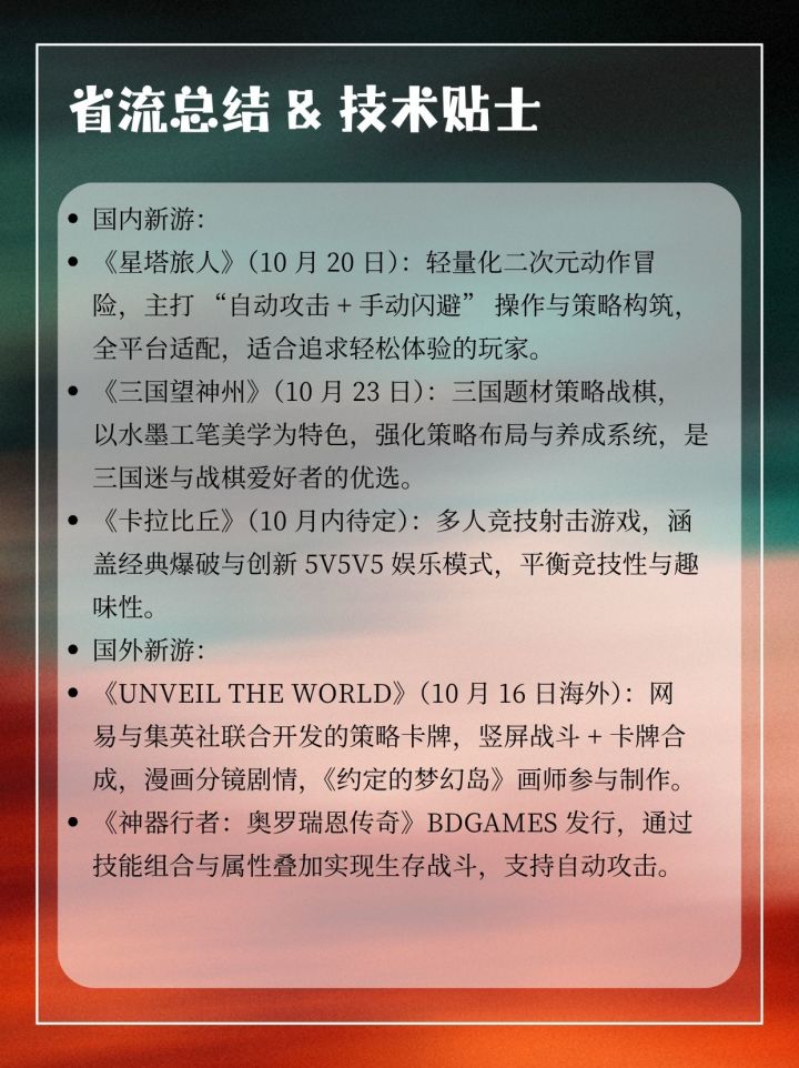 2025 年 10 月国内外手游公测上新榜单