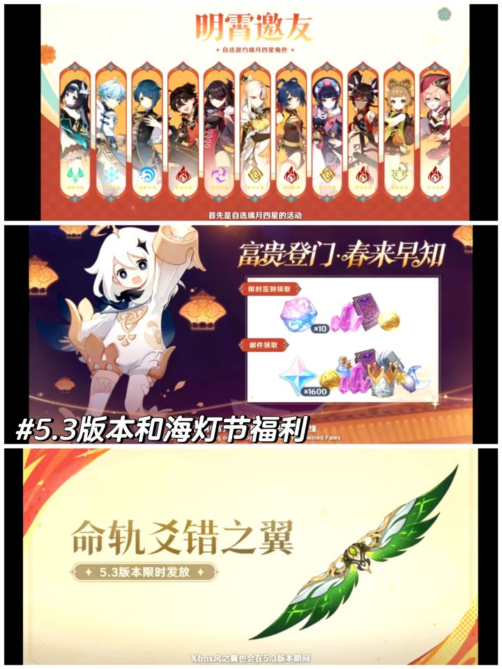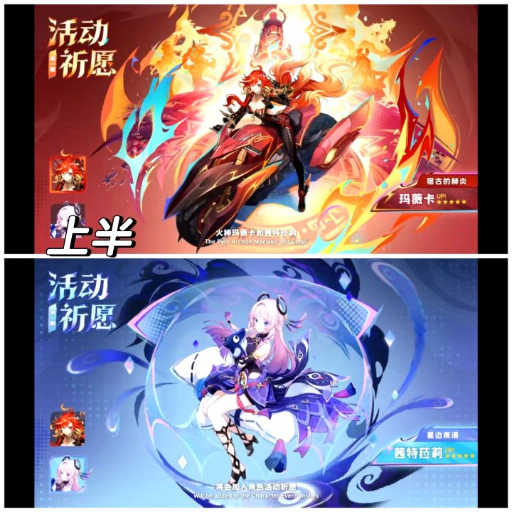 (国服/国际服放评论区了) 上半卡池:五星(火)马薇卡&(冰)茜特菈莉 下半复刻:(火)克洛琳德 &(雷)阿蕾奇诺、(新四星)蓝砚 混池: 白术+申鹤+刻晴+甘雨+魈+公子+七七 磐岩结绿+盾剑+无工+息灾+和璞鸢+碧落+尘世+东极+阿莫斯 海灯节新皮肤:胡桃+香菱(免费送) 5.3版本送风之翼+10纠缠+1600原石加养成材料。 #原神 #原神纳塔 #原神创作者激励计划 #炽烈的还魂诗 #原神5
