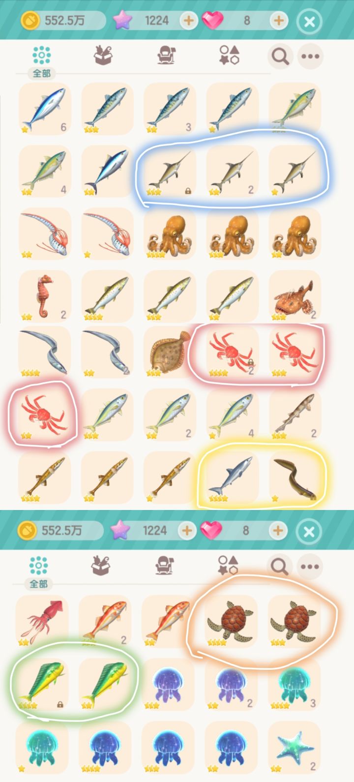 如题,在已有帝王蟹*4,剑鱼*4,欧洲鳗鲡*1,四星尖吻靖鲨*1,鲯鳅*2的前提下——愣是把饵料从55嚯嚯到26+彩虹花buff,才出绿毛龟*2,稀罕玩意什么实力不必多说😭(问就是开了两船🈚️海月水母,不想为了一个图鉴而盲目砸钱,看看以后双休假期时有没有富哥富姐的船能蹭得了)#海钓 #肝帝 #心动小镇彩虹天