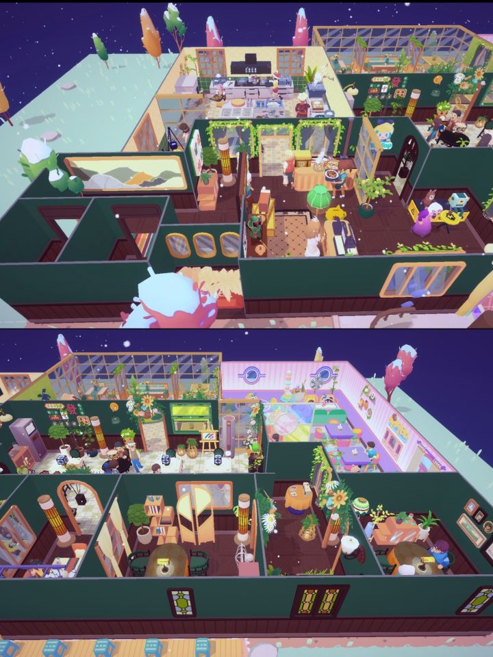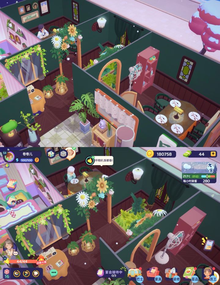 #海风小镇探索季 一间餐厅,两种风格,右边复古新中式风格,开放式明厨在中间, 左侧绿意盎然热带风情,餐厅后半,员工休息区,设备机房。装修未完待续,期待更多可能。 #海风小镇探索季 #百味食光 #百味食光装修比赛主打一个混搭