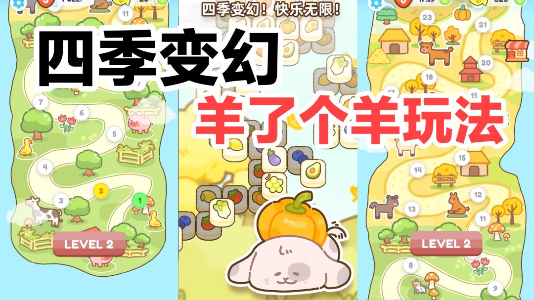 羊了个羊玩法➕超可爱画风➕四季变幻地图风景,休闲小游戏‼️