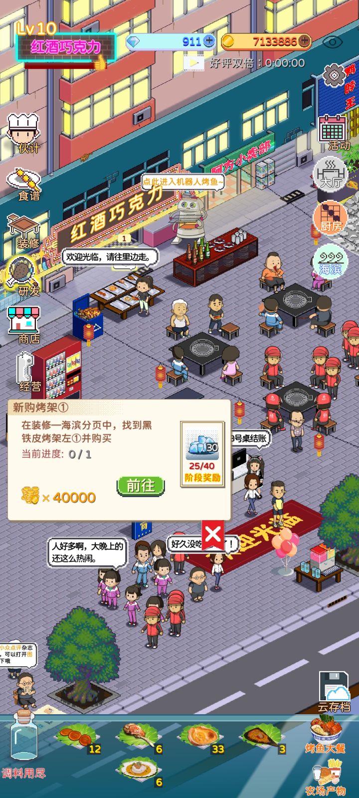我也想说厨师问题,我玩了三四天,真的好慢啊烤的,我也返回去看了一下往日的游戏建议,也是很多说厨师的,真的很慢啊,真的是我昨晚上好不容易手动烤到两千六,洗个澡的时间就没了,还有其他人说的自动烧烤架是我们自己手动的,还是有另外的烧烤架,还有点评真的很慢,不管哪个都很慢,红包和饮料真的不够啊,真的不够用,真的是在线喊话版主#游戏日常 #深夜的烧烤店 #烧烤