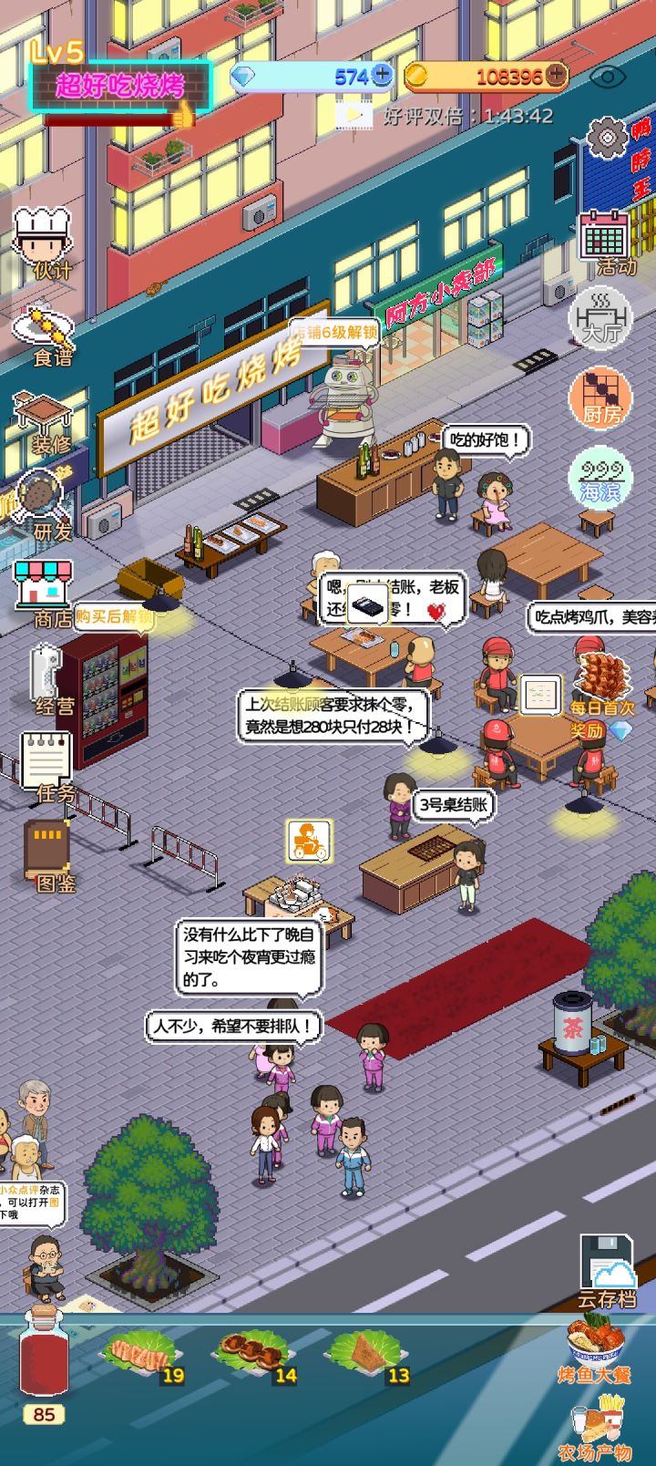 我现在不知道我应该做什么了,钱好少,又不能升级,钓鱼回来好像也不能烤。我该怎么努力搞钱?#深夜的烧烤店