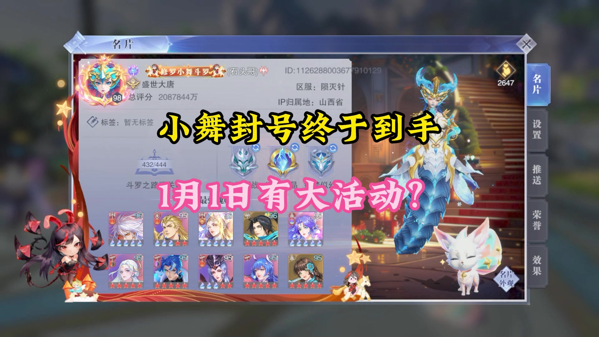 小舞封号终于到手,1月1日有大活动?#斗罗大陆魂师对决 #斗罗大陆 #深海领主小白 #游戏日常