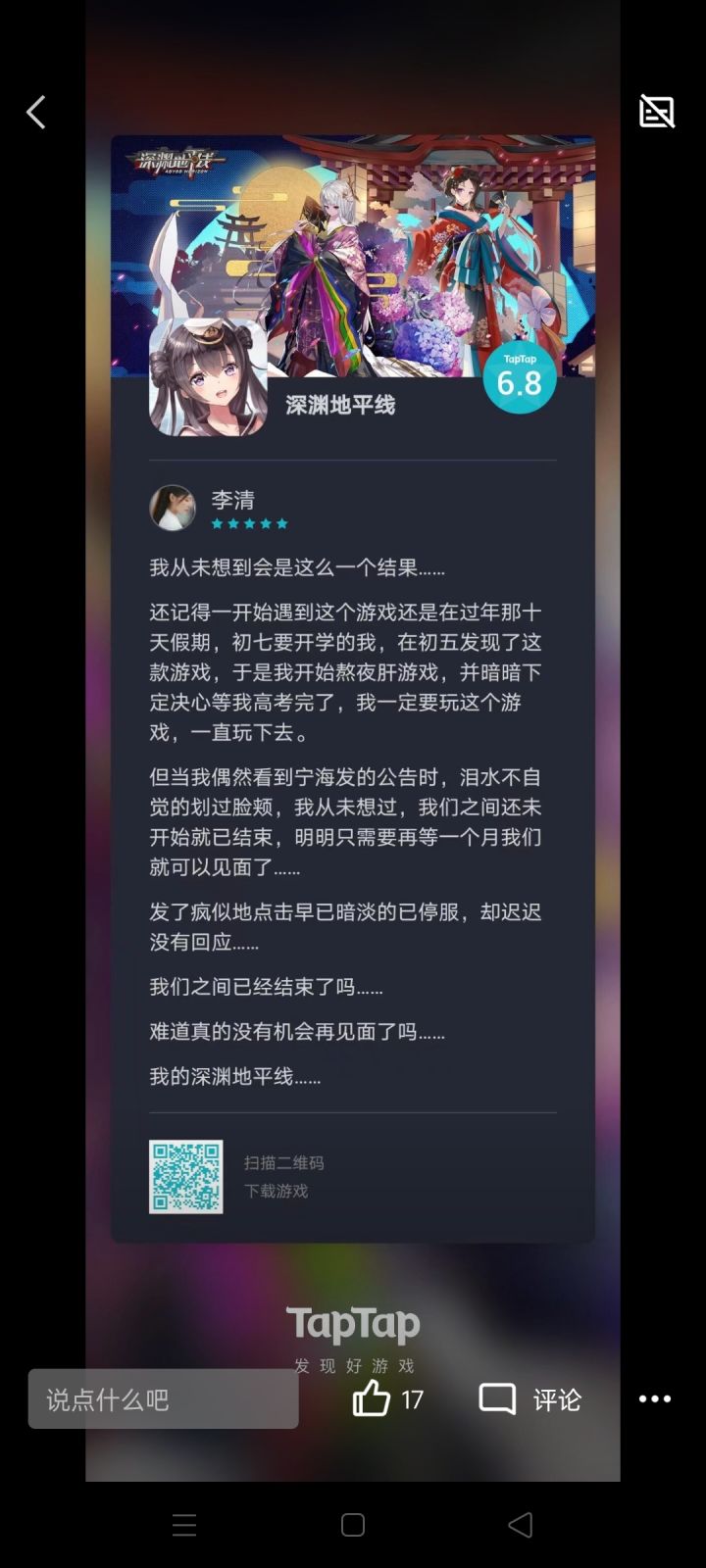 什么是【我的百分之一】见帖子说明:https://www.taptap.cn/moment/371075389700702390 游戏名称:深渊地平线游戏当时发售平台:Taptap玩游戏的时间:21.1.15~21.7.15推荐人群:二次元 3D 舰娘正文:深渊地平线是我在21年也就是我高三过年期间接触到的一款游戏。初高中的我沉迷于各种二次元手游,唯有她,真正的让我心动。那天偶然间发现这