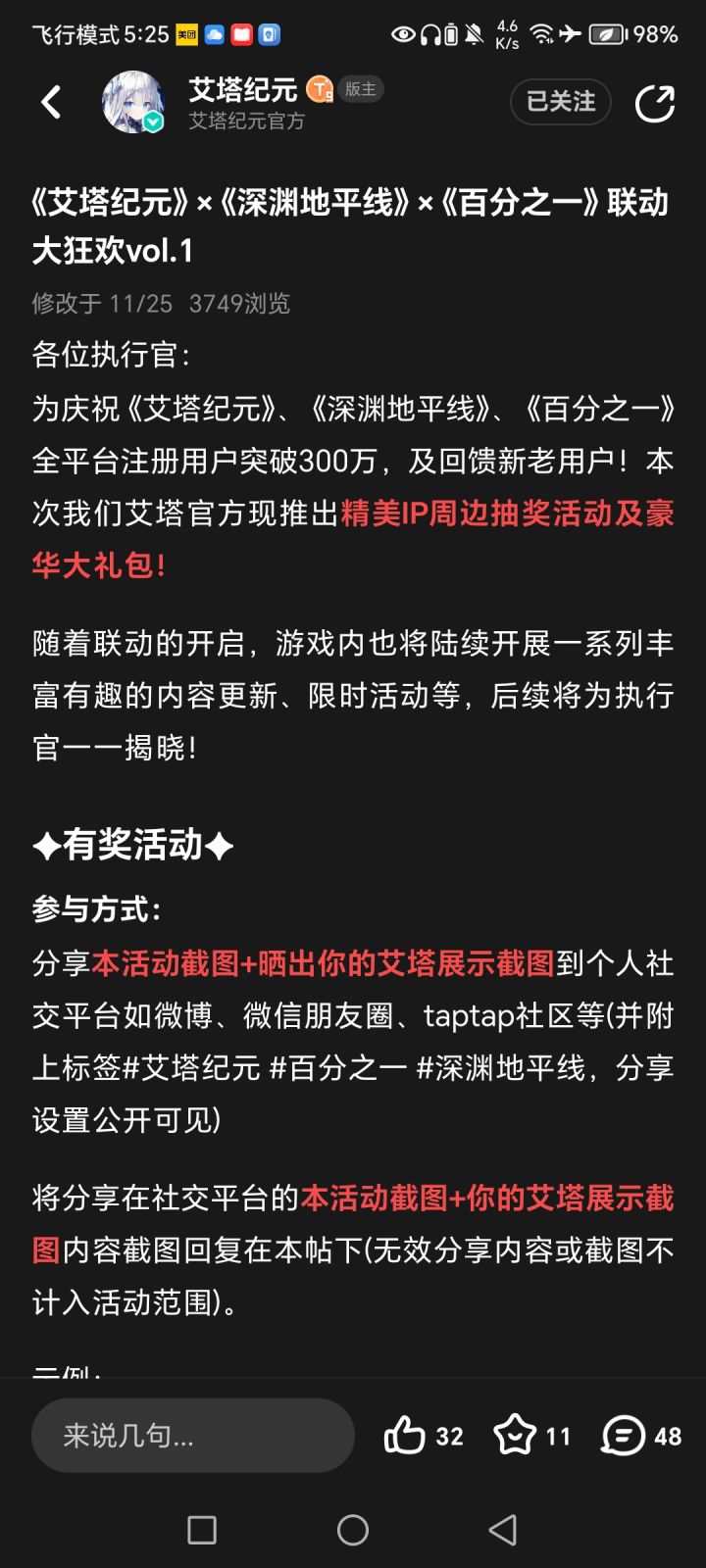 #艾塔纪元 #百分之一 #深渊地平线 祝艾塔蒸蒸日上