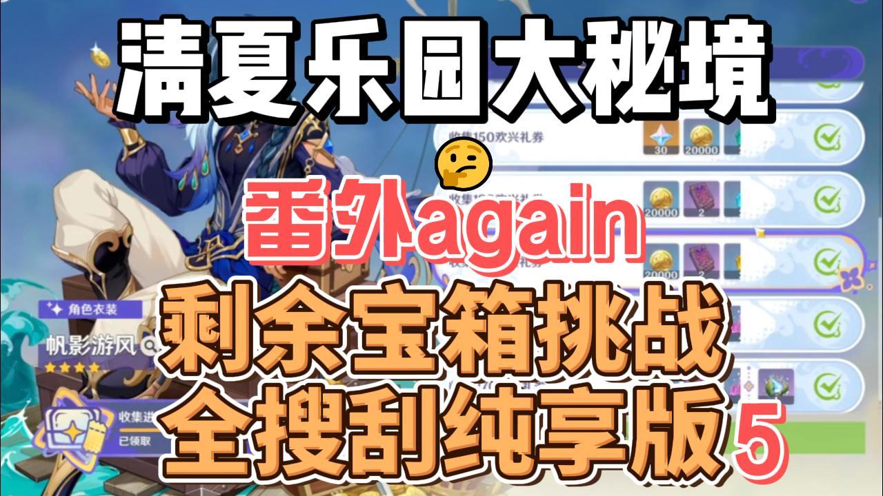 清夏活动结束啦,攻略是来不及了,发个剩余所有宝箱和挑战收集的纯享版吧,纯当纪念了~ (因为全部视频太大,拆分part5)#夏日游戏安利大赛Vol.2#清夏乐园大秘境#原神创作者激励计划#原神#游戏攻略