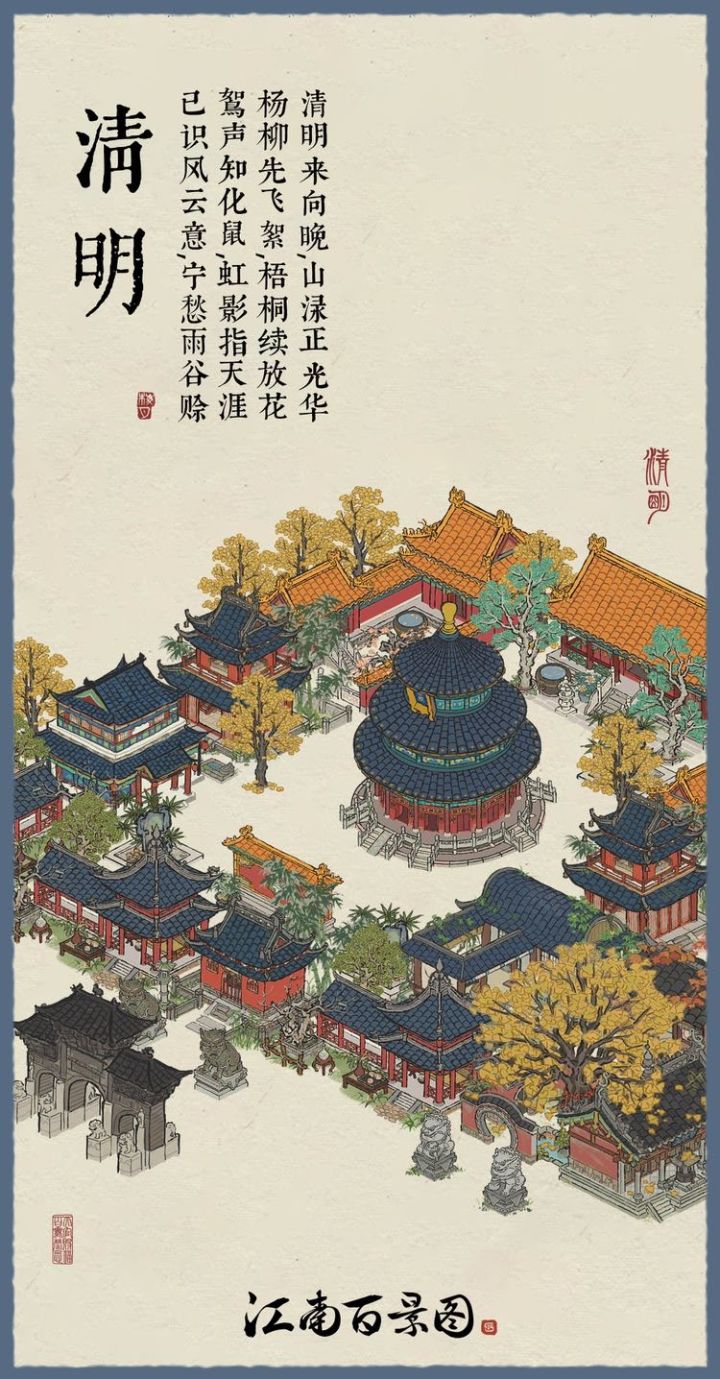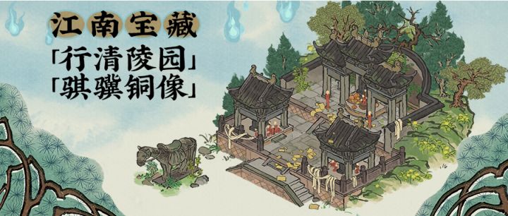 ⭐3月31日起,#江南百景图 全新3*3建筑「行清陵园」及1*3建筑「骐骥铜像」入驻江南!☁3月31日至4月6日,江南诸城将开启#清明 限时氛围,江南居民将佩戴柳枝前往城中坟墓祭拜,在河道中放置河灯以寄相思,亡魂亦将返回江南故乡。🍃行清陵园🍃清明时节,阿福回乡祭祖。陵园内,他见一位鬓发苍白的老丈,神色哀戚,一刻不停地向火盆送纸钱。高龄老人独自扫墓,不知在祭奠何人。阿福暗叹一声,见迎面又来一