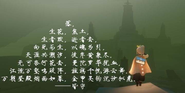 此诗原文:落,生花,焦土,生者默,逝者去,向死而生,以魂为引,天涯共潮汐,彼岸黄泉尽。无可奈何花去,曼陀罗华犹血,江流万壑鸣破阵,旌旗千帆游云舞。万朝登殿烟雨如暮,金甲吴钩沉沙似虎。在下:皆守。#清明#诗