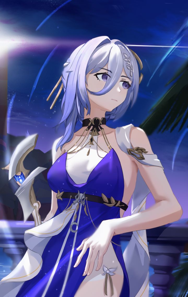 伊邪那美:这是大国主的泳装吧?感觉有点奇怪。。。真的要摆这个姿势吗?。。好吧。(渊海望月)#渊海望月#深空之眼