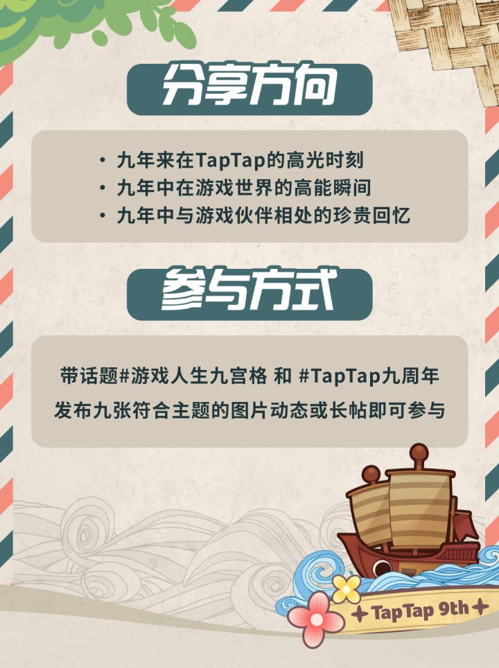 恭喜以上18位小伙伴获奖现金将在公示后的14个工作日内通过创作者中心下发,届时注意查收🎉TapTap 9岁啦!这9年里,我们一起在游戏世界攒下了太多闪着光的回忆——可能是第一次十连双黄的心跳瞬间,可能是逆风翻盘时的热血时刻,可能是通关后的心满意足…翻开你的游戏相册,用九宫格晒出那些发光的回忆吧!无论是高光战绩、搞笑翻车,还是神仙队友,每一格都是时光留给我们游戏人生的成就勋章~【投稿时间】2