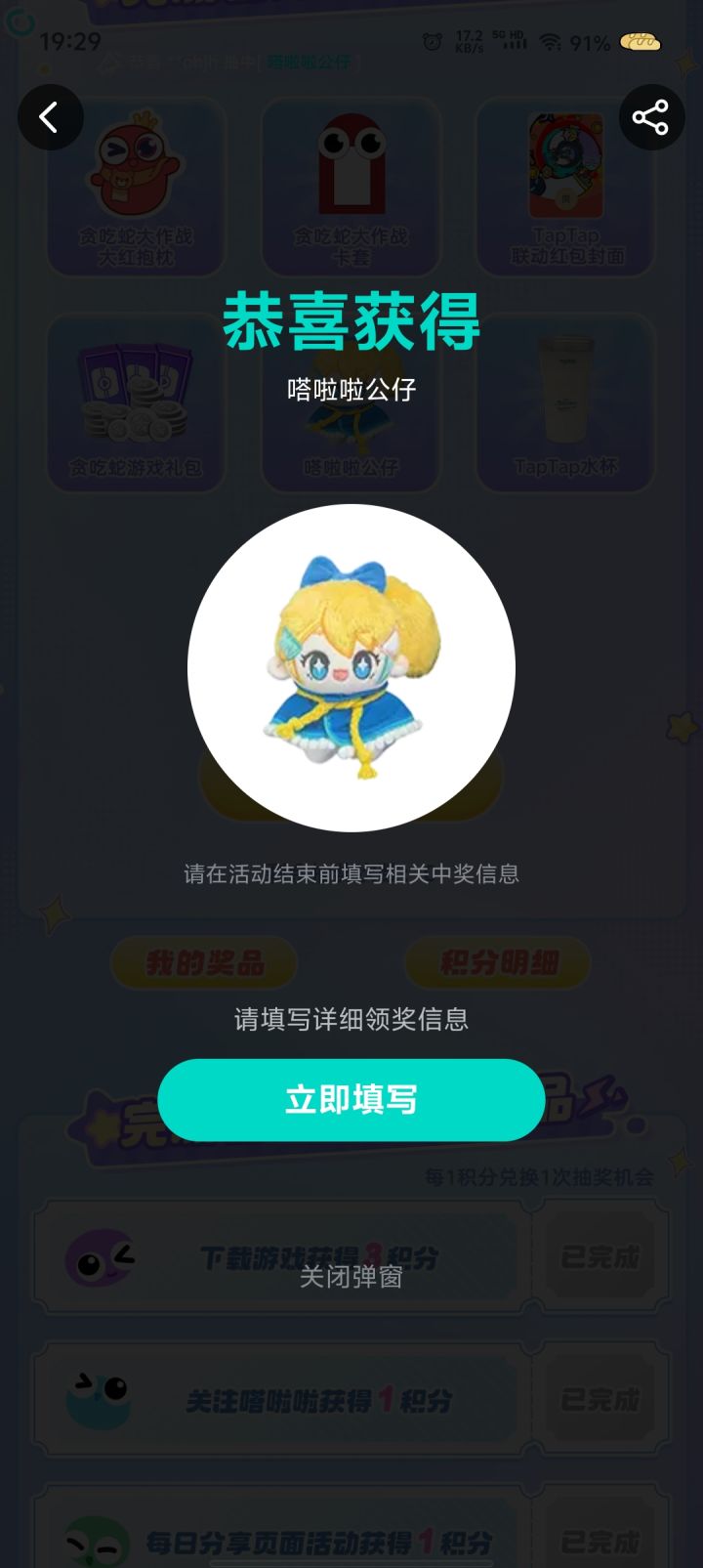#游戏人生九宫格 #TapTap9周年 体验了超级多的游戏,每天都有新游可以玩!还有各类游戏周边~最爱的龙卡绘梨衣!可爱的麦芬玩偶~还有超大一份的诛仙大礼包!超好看的鼠标垫和可爱的贴纸!感谢tap带来的快乐~祝九周年快乐!