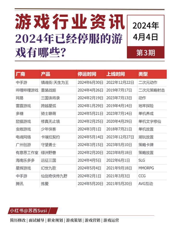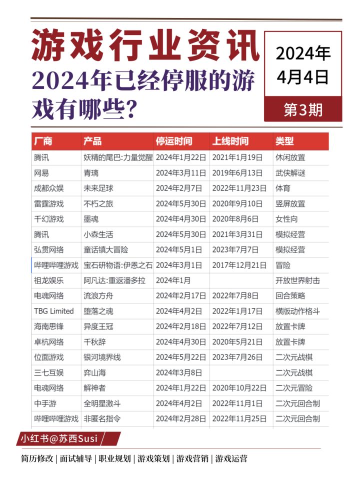 2024年已经停服的游戏