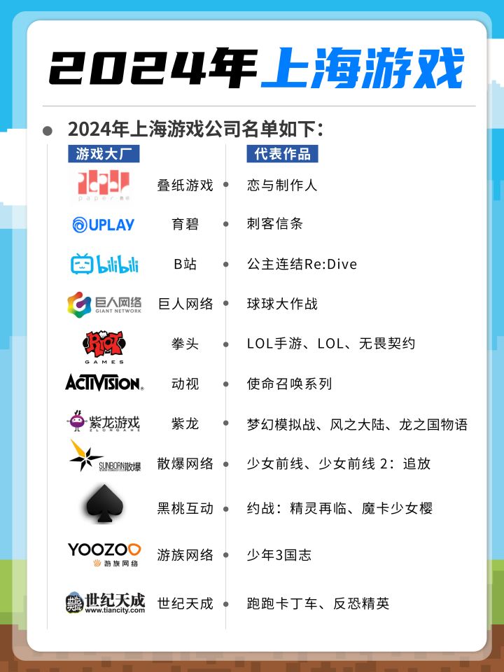 上海游戏公司合集盘点!求职必看