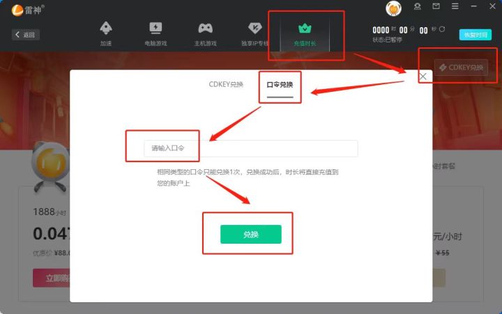 别再等周卡月卡了,用雷神游戏加速器口令兑换码就能领免费时长