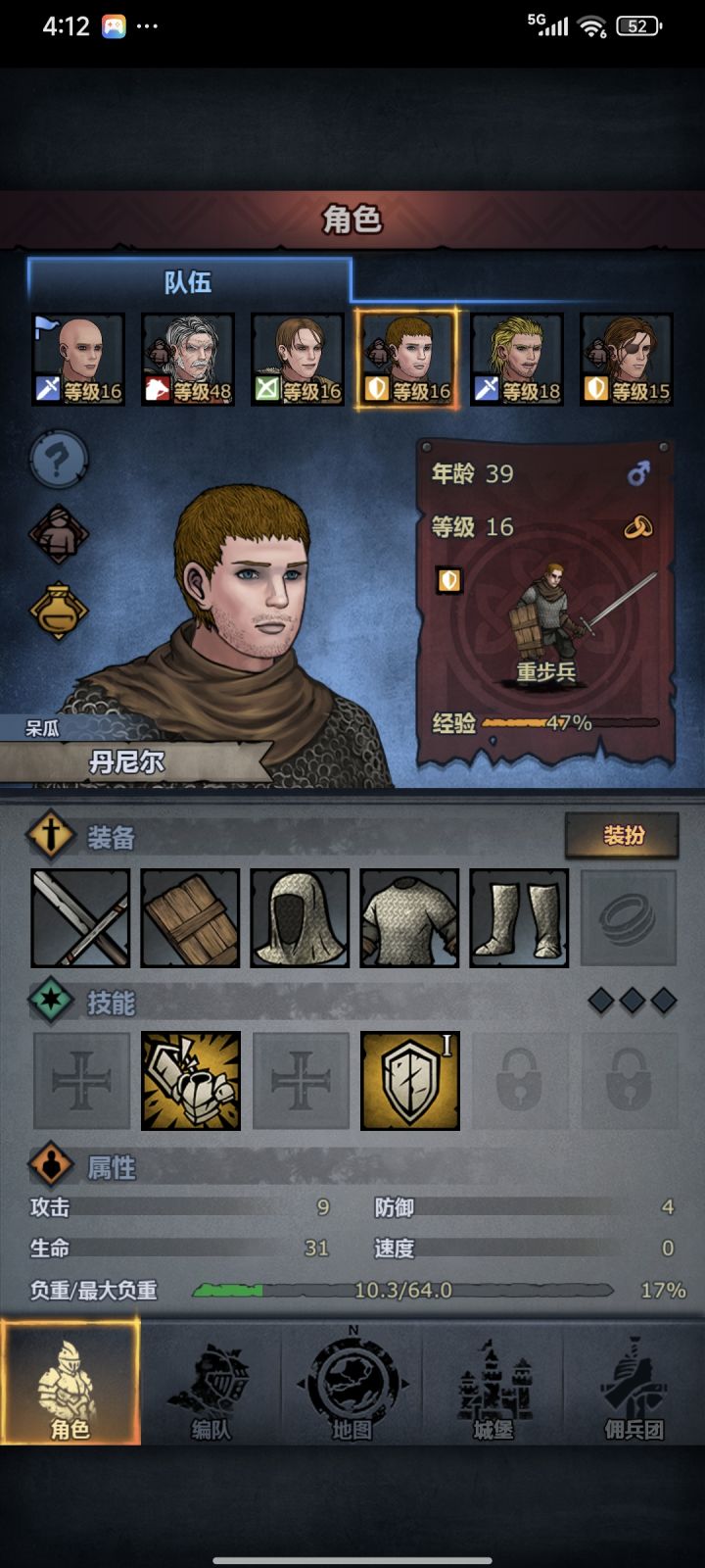 打答案是:永远射不中的仁慈命中王,千里裸奔第一人——【猎人】肖恩(暴击秒,不暴击就是幽默3点伤害。要么裸奔,要么跟不上大部队的幽默人物)——薛定谔的传奇刀斧手——主角本角(暴击23,不暴击7点,狂吃经验第一人)——传奇团宠,老实人,主角团的小呆呆——【重步兵】丹尼尔(前期靠着6级做老大哥,后期等级跟不上。老老实实当吉祥物)——山崖传奇挨揍王,锁血大哥大