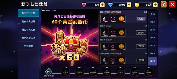萌新七天咯,以后再也不是萌新了吧,感觉这个游戏真好玩捏#游戏图文新春挑战#我的勇者#杂谈分享