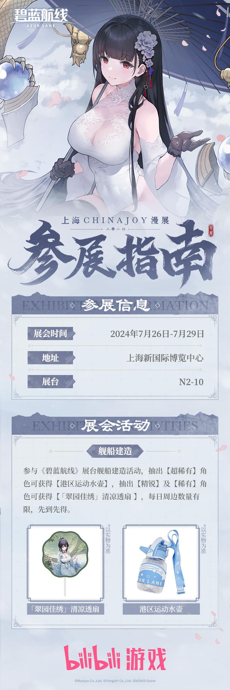 #游戏大玩家 #碧蓝航线 #碧蓝航线漫展 #2024ChinaJoy 亲爱的指挥官~航程前方即将到站——2024ChinaJoy ,「参展指南」现已送达!2024盛夏之约第二站,我们期待着与指挥官相见哟~(・ω< )★展会时间:2024年7月26日~7月29日展馆地址:上海·新国际博览中心展台位置:N2-10参与现场活动,可以赢取碧蓝航线【港区定制水壶】、【「翠园佳绣」清凉透扇】等礼