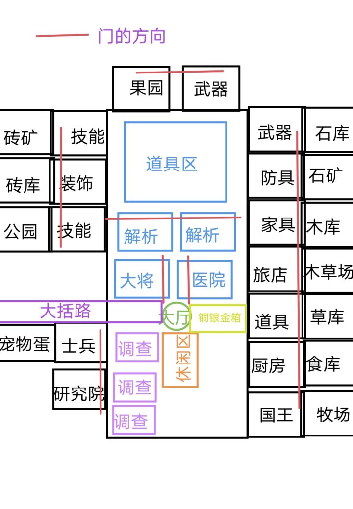 由于游戏中建筑的大小都差不多,所以相较于其他游戏来说比较简单,这是我目前的布局,未来还会继续优化#游戏布局