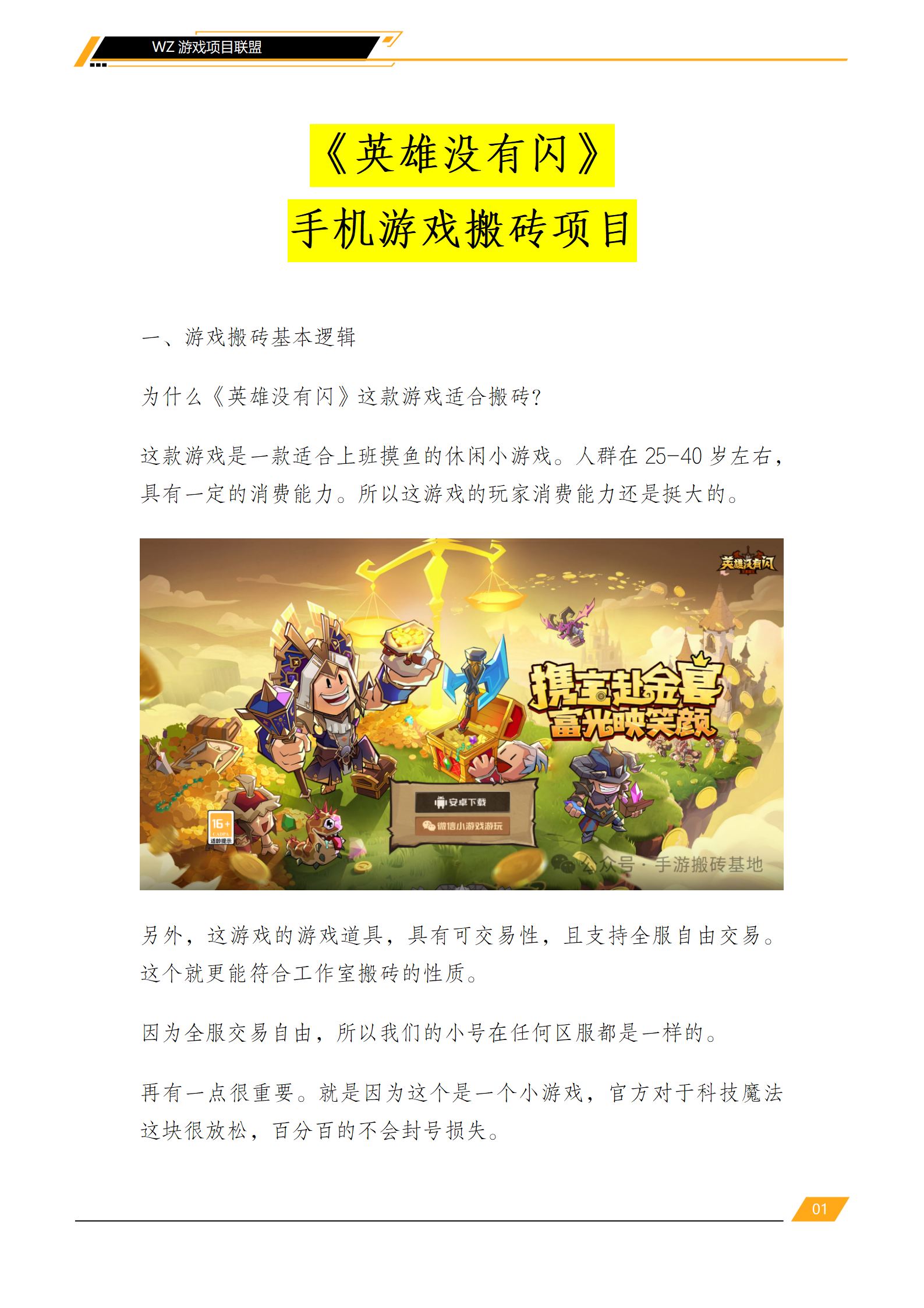 手机搬砖游戏推荐《英雄没有闪》手游项目