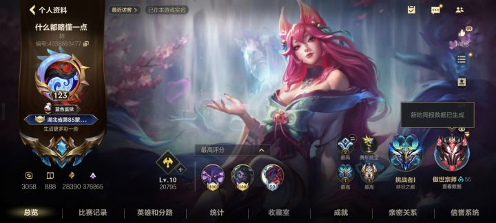 双厨狂喜,最开心的一急,没错我的英雄联盟手游昵称叫“什么都略懂一点”,对!就是“什么都略懂一点,生活更多彩一些”。虽然我不了解这句话的最初出处,但是我第一次听到这句话是在三国杀里面玩神吕蒙,玩吕蒙时每当我用到攻心都会有一种运筹帷幄的自信,也是非常喜欢这个武将和台词,对于这个昵称,我甚至真正贯彻了他,我在英雄联盟手游里面各路位置我都会玩,并且也都有玩了很多把的英雄,虽然说都是学艺不精,但是也是那么回