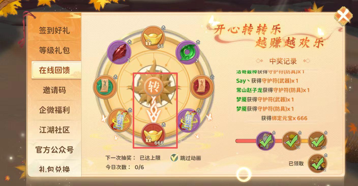 感觉活动里最不起眼的就是这个在线时长了,有的时候甚至忘了领,刚好做完日常之后看见这个活动了,寻思点一下吧,我嘞个豆!直接给我抽出来一个大奖,666绑元!666,我说我刚才怎么左眼皮直跳呢,不过这个运气要是放在爆装备上就好了~#热血江湖归来 #生活杂谈 #发现好游戏 #游戏福利