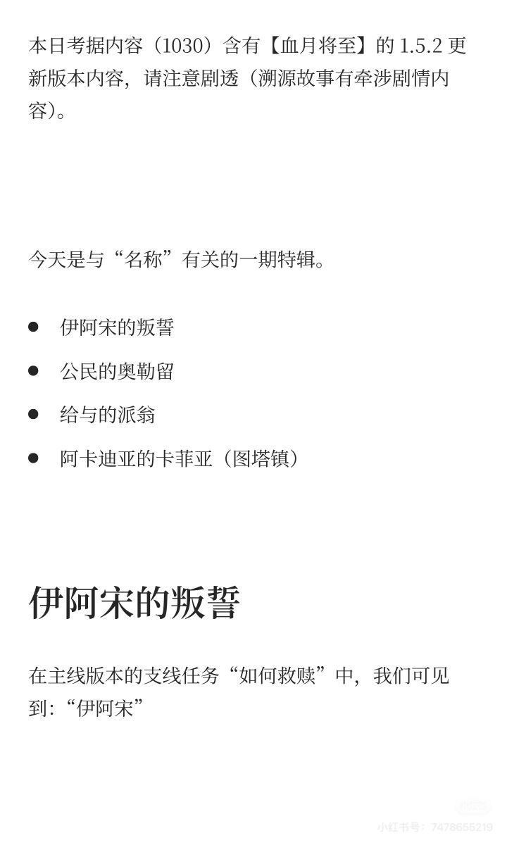 本日考据内容(1030)含有【血月将至】的 1.5.2 更新版本内容,请注意剧透(溯源故事有牵涉剧情内容)。今天是与“名称”有关的一期特辑。- 伊阿宋的叛誓- 公民的奥勒留- 给与的派翁- 阿卡迪亚的卡菲亚(图塔镇)#剑与远征启程 #游戏考据 #游戏日常