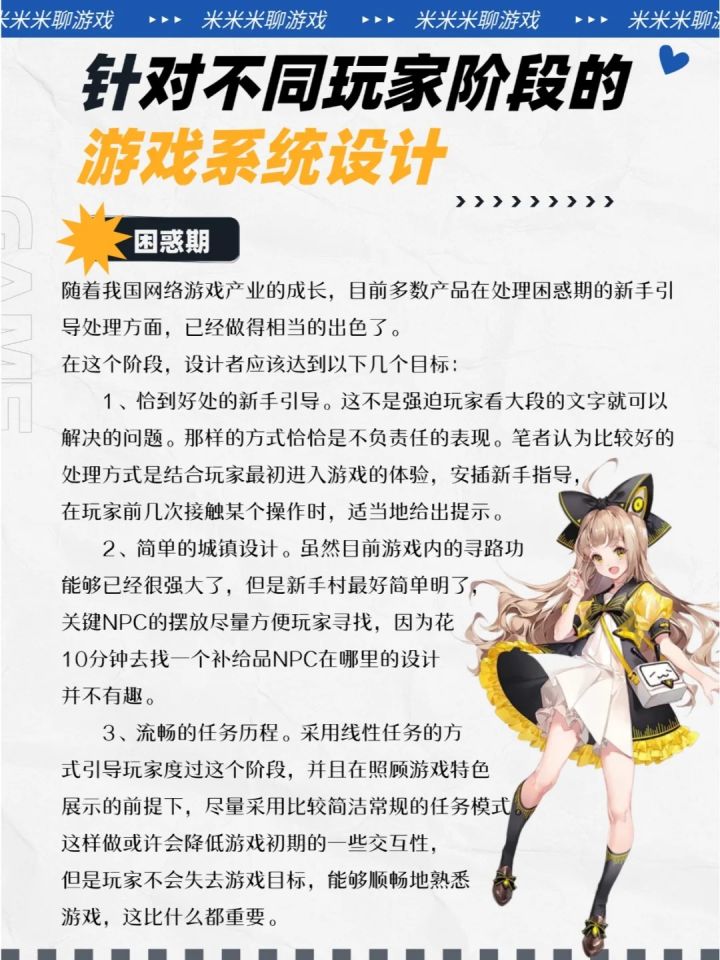 在游戏的广阔宇宙中,每位玩家的旅程都是独一无二的。从初入游戏世界的迷茫新手,到成为游戏世界的熟练探险家,再到可能因挑战不再新鲜而逐渐远离,玩家的每一个阶段都值得被精心设计和呵护。今天,就让我们一起探索如何通过游戏系统设计,引导玩家经历一场精彩纷呈的冒险旅程。一、困惑期 — 新手的启航每位玩家都曾是新手,面对新奇的游戏世界,可能会感到困惑和迷茫。在这个阶段,我们的目标是提供恰到好处的新手