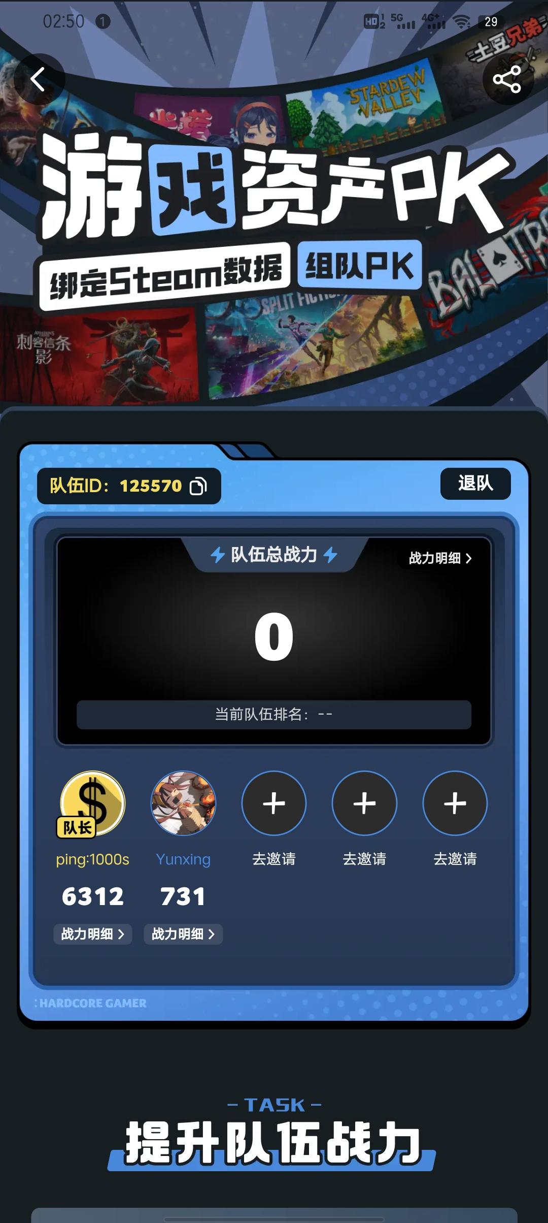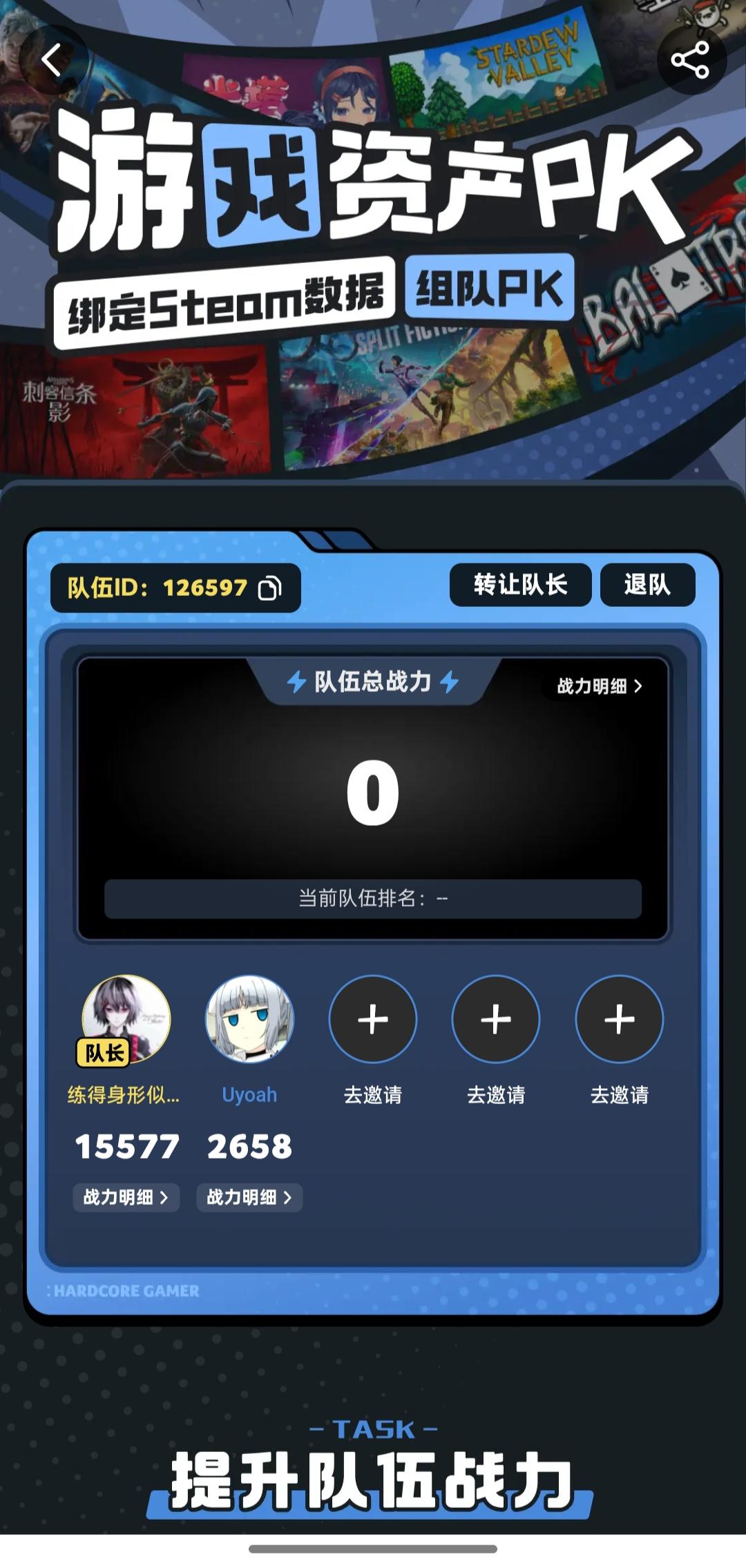 Steam 游戏资产 PK 活动https://www.taptap.cn/events/steam-team?share_id=12d417cb21af&utm_medium=share&utm_source=copylink队伍ID:125570#游戏资产PK 游戏资产PK