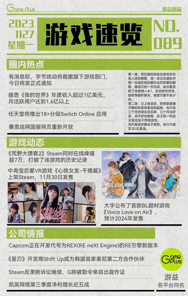 今日热点信息:传字节跳动将裁撤旗下游戏部门;《我的世界》年收超1亿美元更多内容请见图片:#游戏资讯#游戏杂谈#游戏讨论#游戏公司#游益