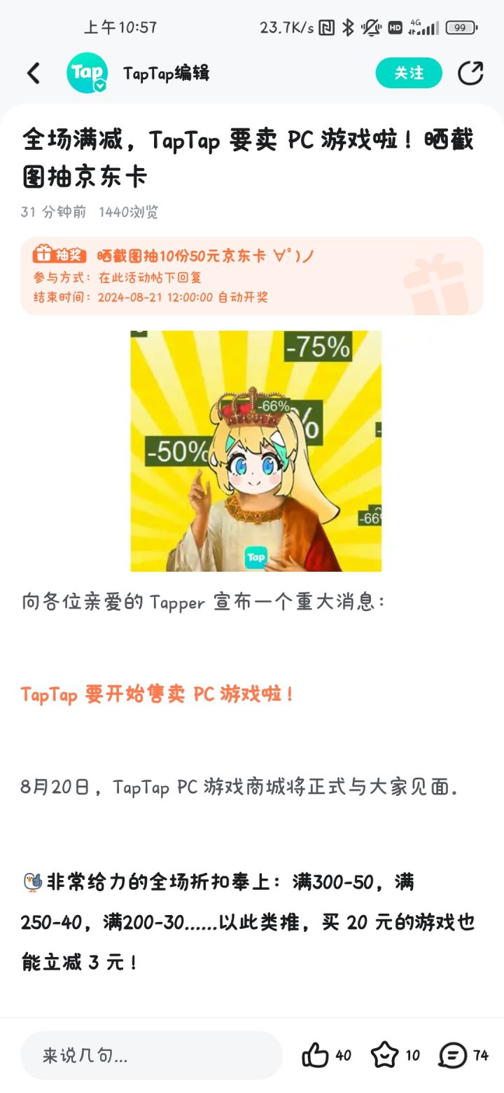 tap现在是已经从头疼医头过渡到这个阶段了。我头一次看到这个消息觉得挺奇妙的,就你那个tap编辑官号发的抽奖帖底下还有人分不清steam cdk商店和游戏商店有啥区别,我就知道这事基本上是纯乐子。没有别的意思,怕是那个帖子的评论区里面能有50%的人能把steam下错咯。当年是tap自己给自己的深度用户和平台上的优质玩家赶走的,你现在平台上只剩下一般的手游玩家,指望你平台用户像机核和小黑盒一样拥