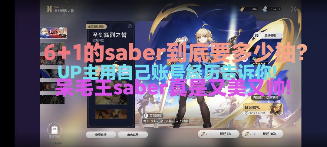 6+1saber到底要多少抽!up用自己真实情况告诉你!