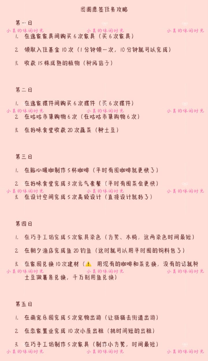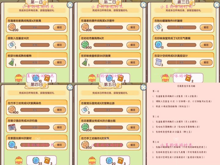 ⚠️该限时任务是每天上午10点开启哦⚠️此贴是第1日到第5日的任务攻略后续的2天任务会更新在评论区~⚠️任务攻略详见图二图三是染色、制作时间短的家具⏰活动时间:9月13日10:00到9月24日23:59 #我的休闲时光 #满月酒家微场景 #我的休闲时光攻略 #我的休闲时光创作官 #我的休闲时光蜗居物语