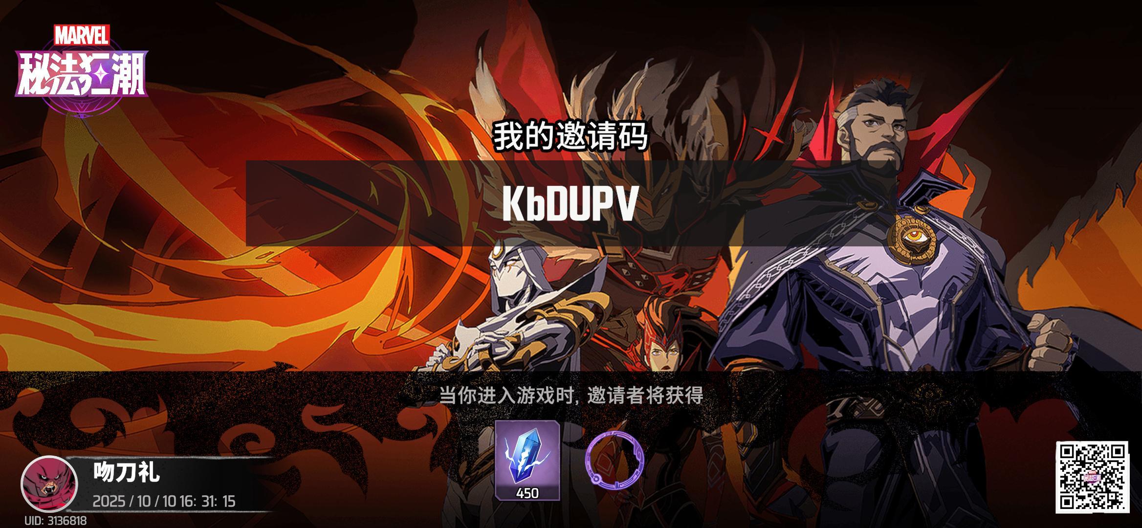 邀请码:KbDUPV 有不懂的可以问哦 #漫威秘法狂潮 #漫威秘法狂潮上线