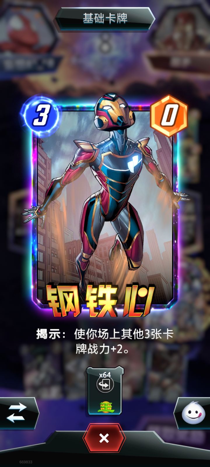 素材局,终于是打了一把出来,钢铁心扫了64次,要是有狂攻堡垒能扫256次#漫威终极逆转兑换码