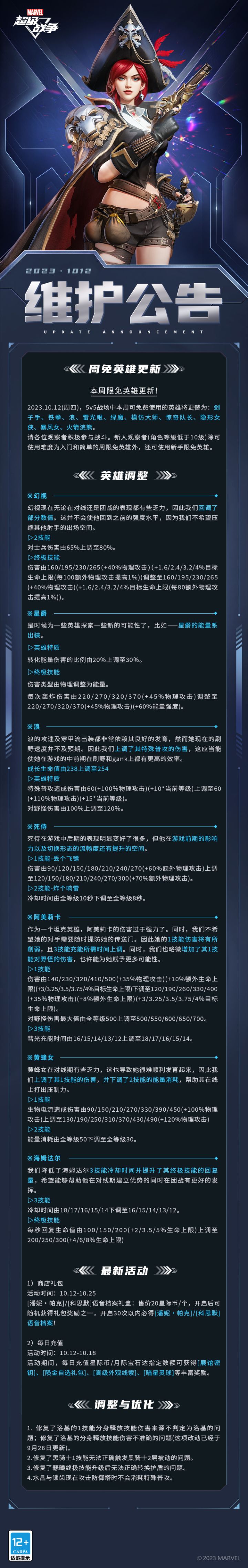 尊敬的观察者: 大家好!薇薇安带来了《漫威超级战争》本周的维护情报。 10月12日维护后,开发组对幻视、星爵、浪、死侍、阿美莉卡、黄蜂女、海姆达尔等英雄进行了平衡性调整;更有语音档案礼盒上架以及每日充值活动开启,更多详情快来看看吧~#游戏种草计划#漫威超级战争S10赛季#漫威超级战争三周年#漫威超级战争#吃瓜爆料#游戏讨论