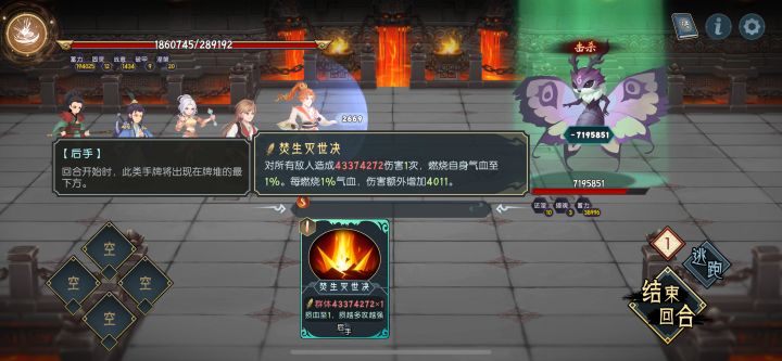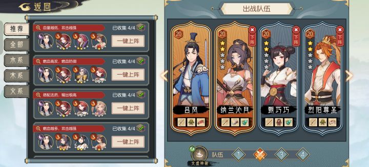 主要阵容;纳兰-巧巧-公孙灼最重要的事件;祭坛(越塔必sl)-太阳精火(三个负面全是纳兰的正面效果)-试毒(有血力决选)公孙:复活工具人巧巧:今天试了一下巧巧换仙妃发现不行,很拉x试了一下巧巧换燕彩衔伤害并没有提升太多,因为换燕彩衔必须是大后期不缺灵气才可以只能说锦上添花纳兰:每次血量变动都会增加百分之15伤害和1点战意(中毒/燃血/自残)都算,所以纳兰负面越多越厉害祭坛事件:燃血恢复