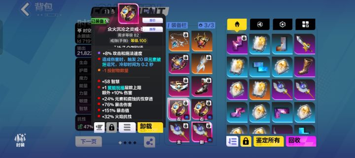 hellohello!大家好久不见呀!我是你们的小清纷!不知各位客官开荒如何呢,还会嫌火炬难度低寿命短吗?今天,就让我给各位客官带来我的开荒bd,第一天开荒的进度是勉强K8,生存不会特别暴毙,dps2亿,希望能帮助到各位装备全身最贵的两件装备而且也不是必须的风息之引,当时购买价10火,没有的用冰洁雷光,电转冰戒指,带电点伤双智慧伪神,当时购买价15火还有最关键的武器法术暴击值一定要有