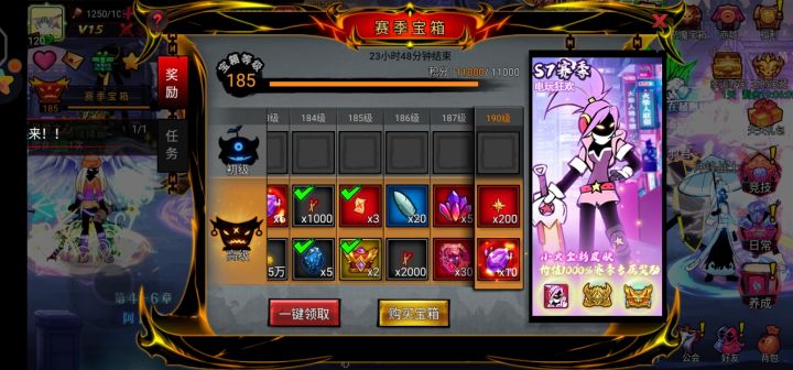 赛季宝箱任务全做满,没买128宝箱,没买过积分,纯做任务到185级,这就是肝帝!#肝帝玩火2#赛季宝箱任务做满#火2
