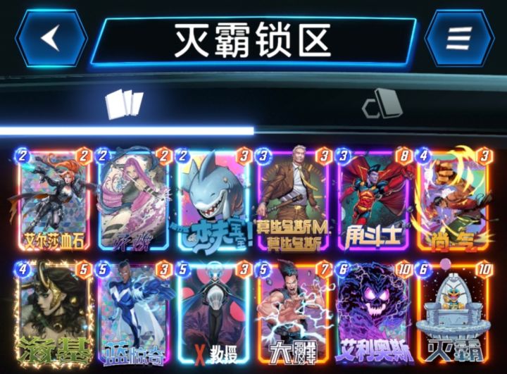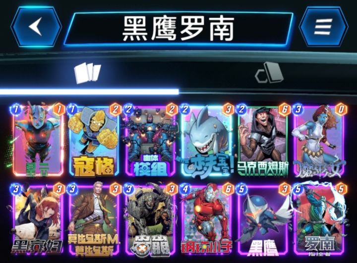 这两周斗界杯灭霸卡组大放异彩,各路主播都在推荐 ,加上灭霸本身趣味性与人气并存,因此个人征服环境里几乎每一局都是灭霸,尤其是图二星影推荐的灭霸洛基(大群有换幻视/沙魔的)。实战中遇到这套灭霸确实很难处理,因为对方地形应对能力强,同时T5要防锁区,T4要防跳费锁区,很干扰己方战力的分配。因为灭霸的六张宝石,克制它的第一思路肯定是黑鹰,但传统黑霹雳黑鹰依赖黑鹰单卡的上手,且点数较低,同时灭霸的宝石会
