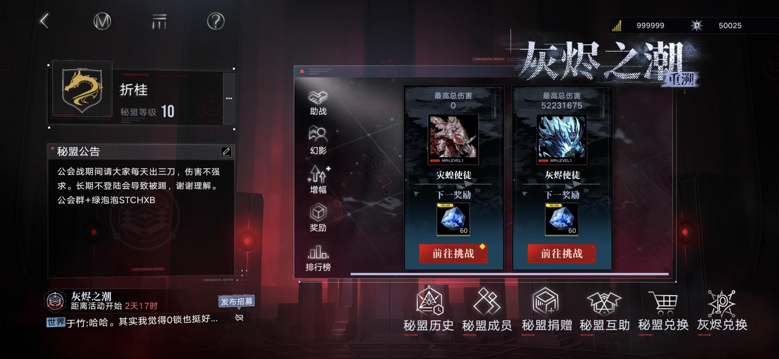 新城满级秘盟招人啦,每期都能打满#无期迷途#灰烬之潮#无期迷途公会战