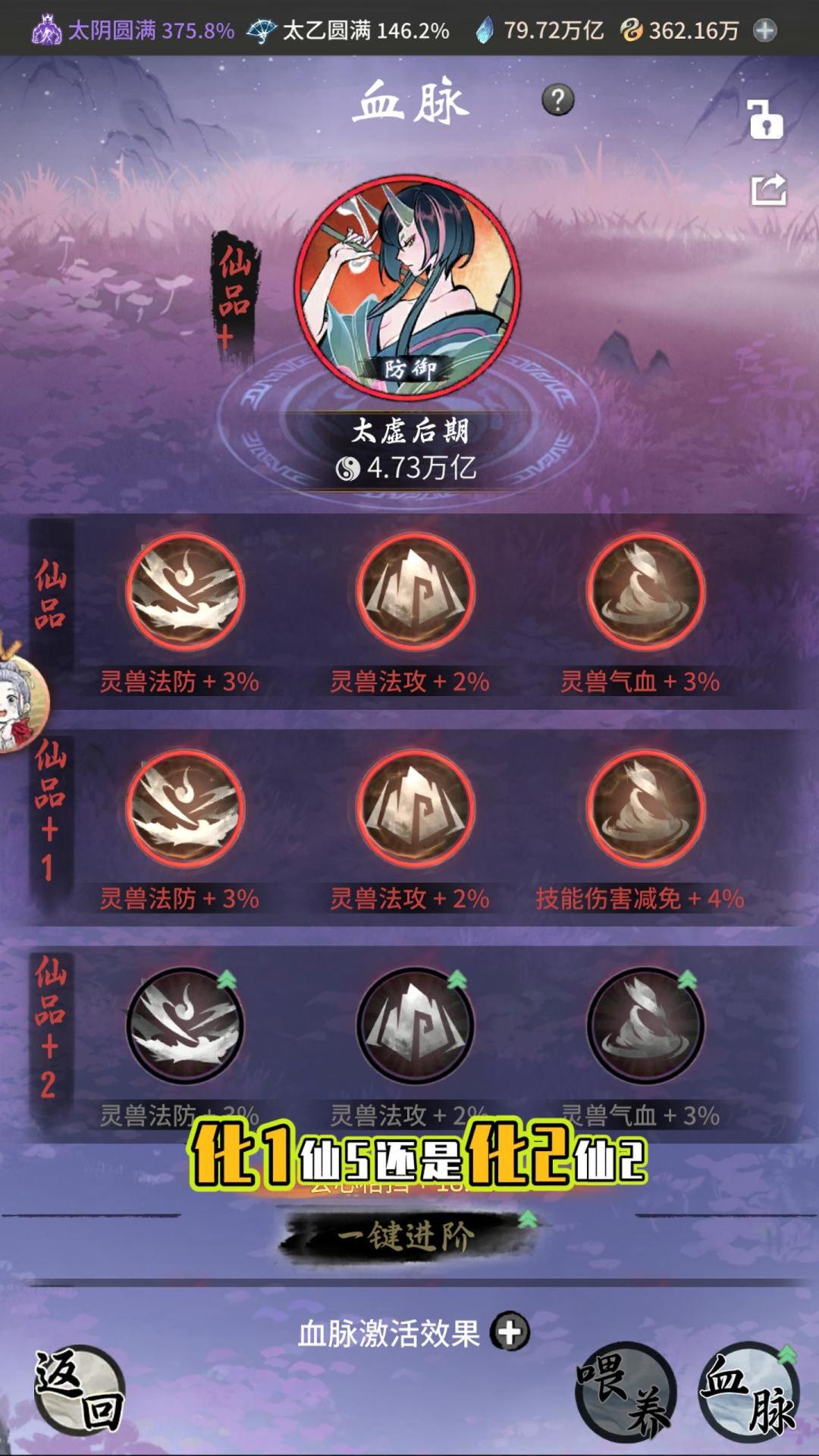 化1化2仙品血脉的不同情况#一念逍遥 #一念逍遥攻略 #灵兽 #游戏日常 #修仙手游