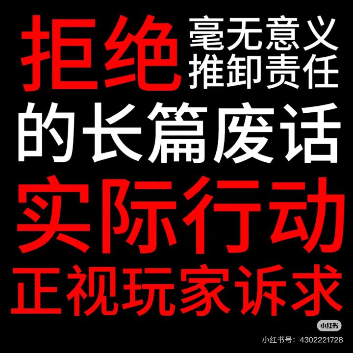 修改本次傅融活动的不当文案!修改“地下偶像”有争议的名称!头像框“地下偶像”收回优化,拒绝任何歧义或暗示!❗删除麦琳梗,叶柯梗!反对猎巫!拒绝剧情弱化广陵王,闪光让位情况,请回归女本位定义!请官方约束屏蔽社区内的乳女言论❗️正视普通玩家诉求❗️制作团队提纯,优化拿皇漫男凝角度消遣女性侮辱玩家的员工,请不要披着女性策划人的面孔转移视线及集火,小作文对于实际行动毫无提及,请正视问题,诉求