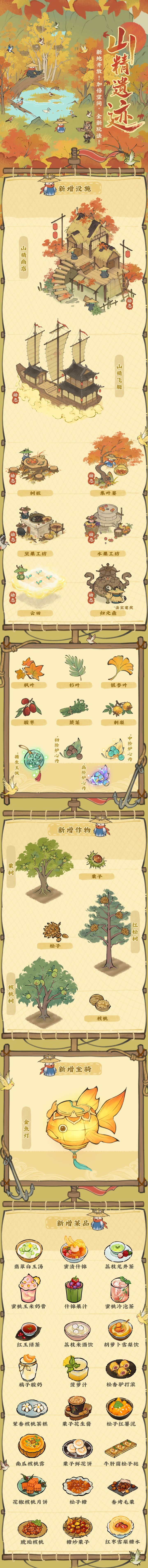 🍁全新地块「灵盈峰」将于12月30日开启!集叶篓、云田、山精飞艇…山精将最珍贵的记忆藏于此处,静待小农前来探寻。🍁灵盈峰🍁🍂小农达到宗门30阶,并且完成“宗门30阶”主线任务后,前往夏阳处完成【奇怪动静】系列任务,修复栈桥,即可开启「灵盈峰」。🍁山精商店🍁🍂山精经营的商店,进来逛逛吧,总有些你没见过的东西~🍂开启商店后,小农可在山淘淘处购买银杏叶、刺梨、建筑碎片等所需物品及奖励。🍁山精