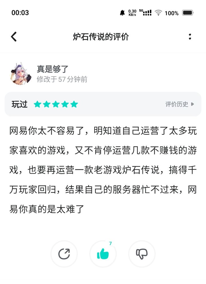 两年都忍了,两天就忍不了了,游戏而已,可以过几天再玩啊,你以为一个游戏回归那么容易啊,没有网易,这个游戏连个信都没有,回归奖励那么好,给网易一点时间怎么了,给游戏一点耐心,游戏少则三天,多则五天不就什么都好了,还能影响你操作不成#炉石传说