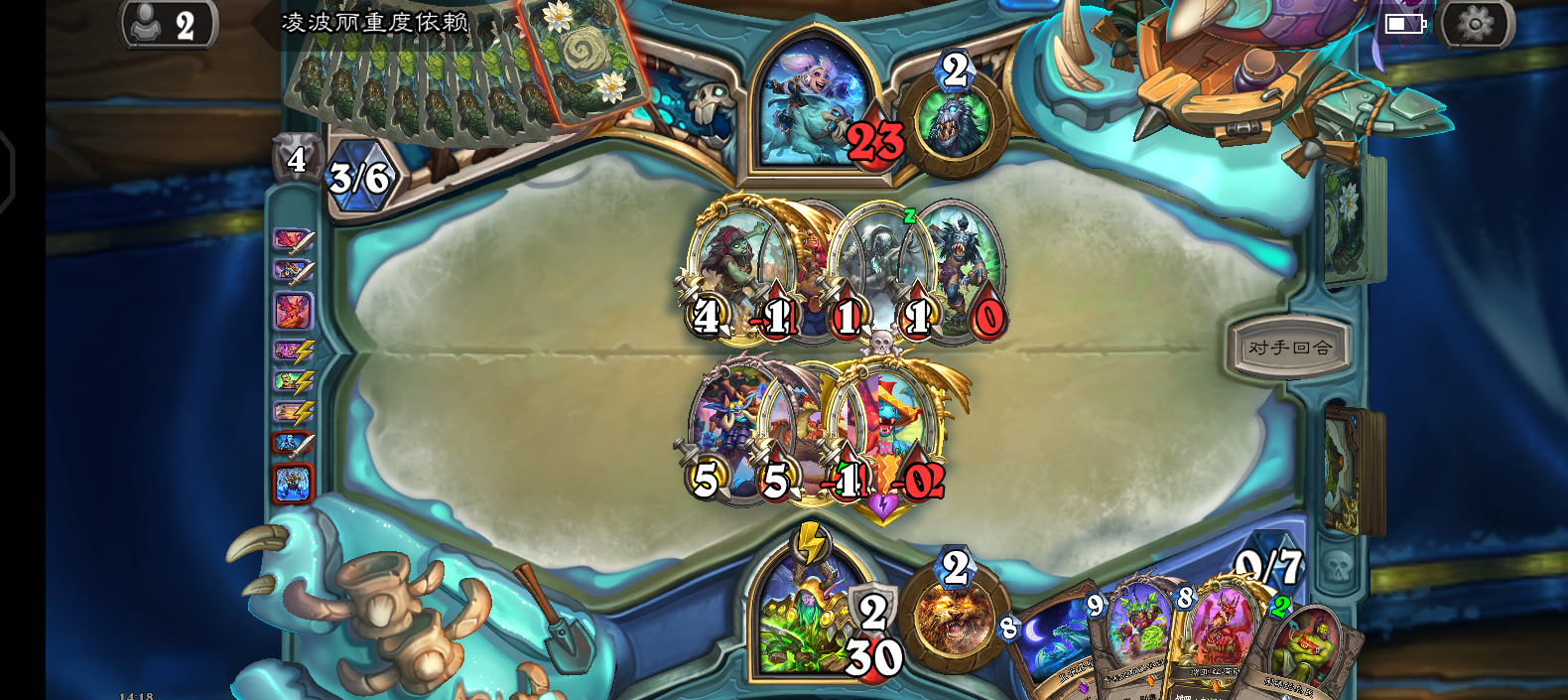 不好是快攻骑!呱!振翅守卫,救我呀!呵呵哈哈哈,到了六费还没有杀的掉我吗?现在是我的回合!将大局逆转吧!嗷~#炉石传说 #灌注猎