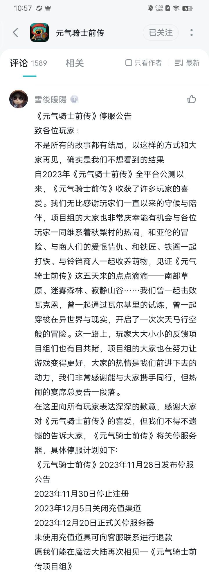 好好好,关服就关服,要是敢删角色数据跟你没完。给我上调熔铸石掉落概率,给我上调所有卡片的掉率。你小子要是敢把角色数据给删了跟你没完。早就说了修不好关服,加多点奖励不就行了然后官服一两天两三天的把服务器搞好不就行了。评论快得很啊我回来也把评论改成差评。#元气骑士前传#土豆服务器#炸服#停服