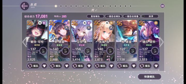 我这光队感觉经常打高分打不过,有没有哪里需要改进的?而且后面需要两个配队了,我目前只有光队勉强能用,第二个队有没有大佬帮我看一下建议我组什么?#炽焰天穹 #游戏推荐 #炽焰天穹配队