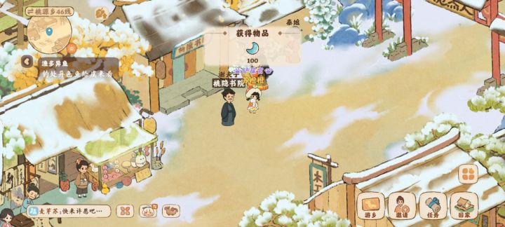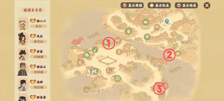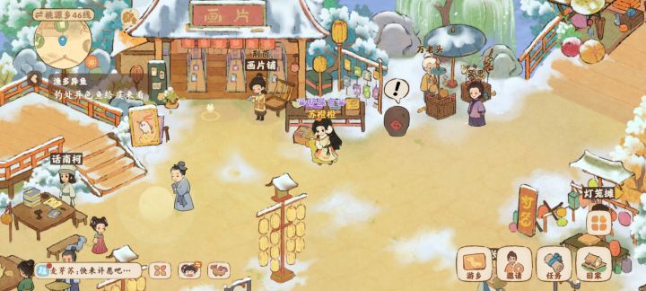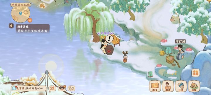 虽然地图不大,但是跑来跑去挺浪费时间的,这是这个任务完成点——共有三处地方:①画片铺右边②河灯摊旁边③采风创物处要注意:一、按照我标记的顺序去寻找二、第三处和和最后领奖励处用陶陶形象,要不进行不下去。#烟火桃源乡内容征集