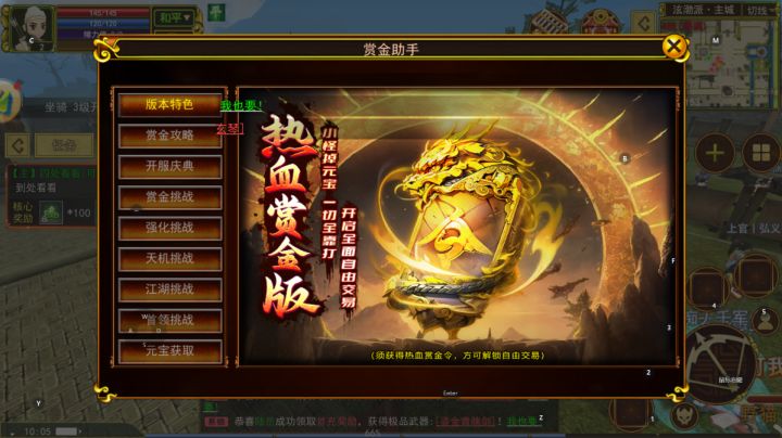 若你想在热江点卡服中踏上精彩的搬砖之旅,那么首先要精心做好账号起号工作,为这场独特的冒险之旅打造一个良好的开端。开启赏金令是至关重要的第一步,赏金令就如同搬砖的通行证,有了它,打怪获得的元宝、道具、装备等才能变成可以交易的物品。同时,赏金令还有众多实用功能,比如创建门派,让玩家可以组建自己的团队,共同搬砖;自动出售功能更是大大提高了搬砖效率,节省了玩家的时间和精力。购买侠名也是一个不错的选择。